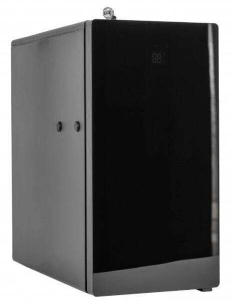 Professzionális Dr. Coffee kompresszoros hűtőszekrény 1 és 5 °C között szabályozható hőmérséklettel. Az aktuális hőmérséklet az elülső kijelzőn jelenik meg, és kényelmesen módosítható a kapacitásgombok segítségével. A hűtőszekrény belső térfogata 8 liter, ami körülbelül 2-4 liter tej tárolását teszi lehetővé. A hűtőszekrényt alacsony zajszint jellemzi, biztonsági zárral van felszerelve, és áramszünet esetén automatikus indítási funkcióval rendelkezik.