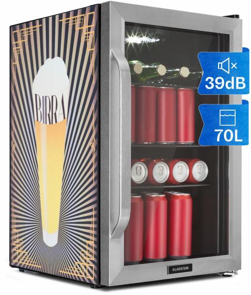 Klarstein Beersafe 70 Birra Edition, hűtőszekrény, 70 liter, 3 polc, panoráma üvegajtó, rozsdamentes acél (HEA13-Birra -SS-E) (HEA13-Birra -SS-E)