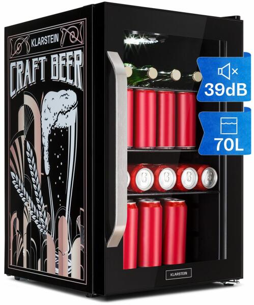 Jól behűtve jobban frissít: A Klarstein Beersafe 70 egy kompakt italhűtő 70 literes kapacitással. A csillogó Craft Beer kiadásban stílusos sörtémájú nyomtatással frissíti fel környezetét, és extra pezsgést kölcsönöz konyhájának vagy hobbiszobájának. A három krómozott fémpolc bőséges helyet biztosít az ételek és italok számára. A panoráma üvegajtó kettős szigetelése megőrzi a hideget a belső térben és kint tartja a meleget. A csiszolt rozsdamentes acél előlap csodálatos kontrasztot alkot a fekete belső térrel. További érdekessége a belső LED-világítás, amely még attraktívabbá varázsolja a Beersafe 70 berendezést. A hűtési hőmérséklet kényelmesen beállítható az 5-fokozatos elforgatható vezérlő gombbal 0 és 10 °C közt. A Klarstein Beersafe 70italhűtő minden italt a megfelelő hőmérsékletre hűt.