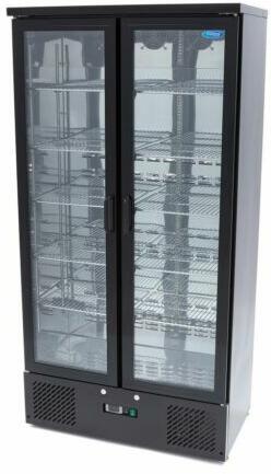 Gyönyörű fekete bárhűtő 2 ajtóval. Ideális palackok, dobozok és snackek számára. Felszerelve 2 forgóajtóval. Dupla üvegezésű ajtók. Dixell digitális hőmérsékletszabályozóval.